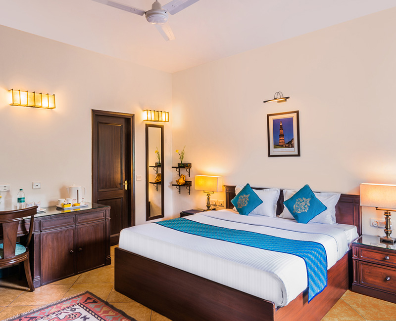 Bed : Typically a single bed, a double bed, or two twin beds.